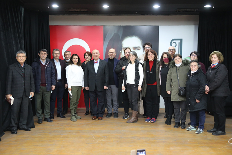 Bayraklı’da deprem gerçeğini anlatan ve gerçek hikayelerin yer aldığı ‘Bayraklar asılı kaldı’ ve ‘Göçük altında’ adlı kitaplarını anlatarak konuşmasına başlayan Prof. Dr. Övgün Ahmet Ercan, “Deprem konusunda araştırmalar yaparak görüşebildiğim kadar vatandaşla konuştum ve etkilerini bir kitapta topladım. İnsanlar depremde korku ve can havliyle hemen kaçmaya, çocuklarına koşmaya, telefonlarına ulaşmaya çalışıyor ve birçoğunu da deprem ayakta, merdivende, kapıda yakalıyor. Hayatta kalmak için en güvenli yerde cenin pozisyonunda kafamızı koruyacak şekilde kalmak, alabiliyorsak belki telefonu yanımıza almak en doğru sonuç olacaktır. Yaşadığımız yapıların sağlam zeminde, kaliteli yapılmış olmasına dikkat etmek gerekir. Deprem sonrası zemin ve yıkılmayan yapılar yorgunlaştı. Yeni bir depremde yerin sıvılaşması daha da artacak. Dünya afet yasası büyük deprem sonrası yıkılan evlerin yerine yapılaşma olamayacağını söylüyor. Ama bizim ülkemizde bu durum farklı işliyor. Halkımız da yıkılan evinin yerine yeni ev yapılsın istiyor. Ama biri de çıkıp buraya yeni yapı yapılması doğru değildir” demiyor. Daha güvenli zeminlerin olduğu yerlerde yapılaşmaların olması en doğru karar olmalıdır. Deprem gerçeğini hiçbir zaman unutmayalım” diye konuştu.